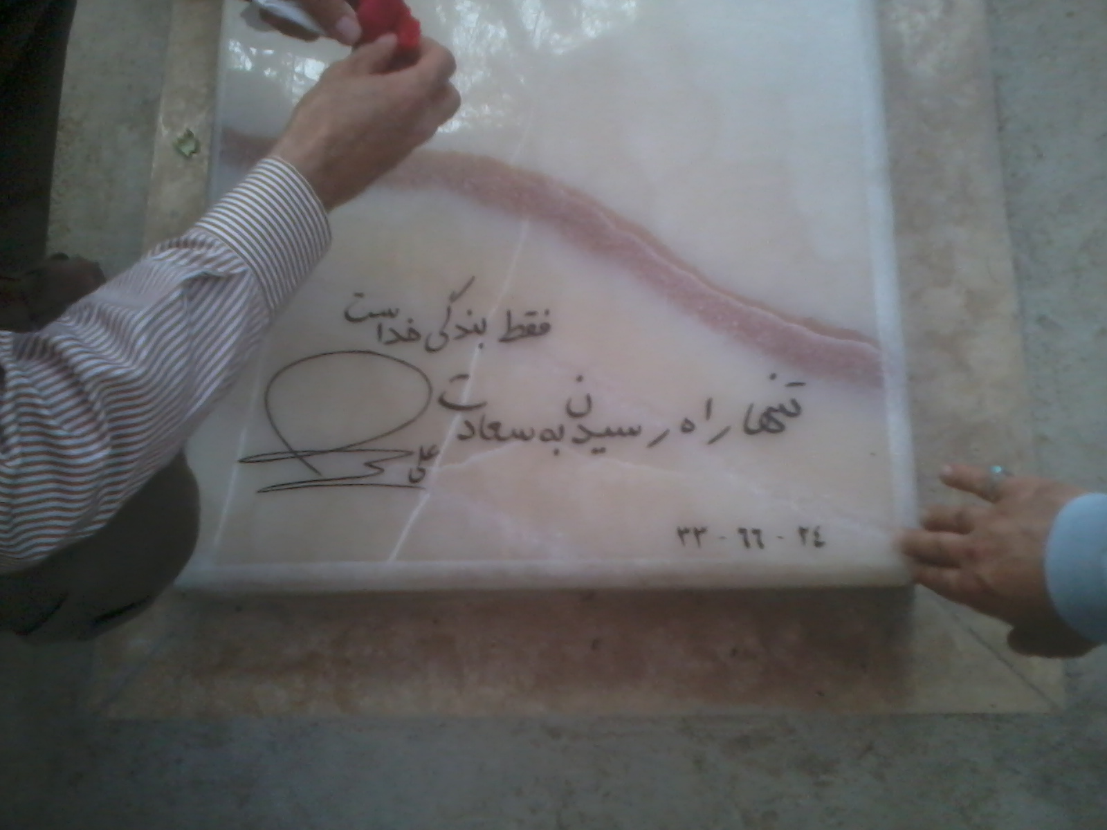 و در آخر روی سنگ شهید که به تازگی روی مزارش نصب شده است چند کلمه به دست خط شهید نوشته شده است :